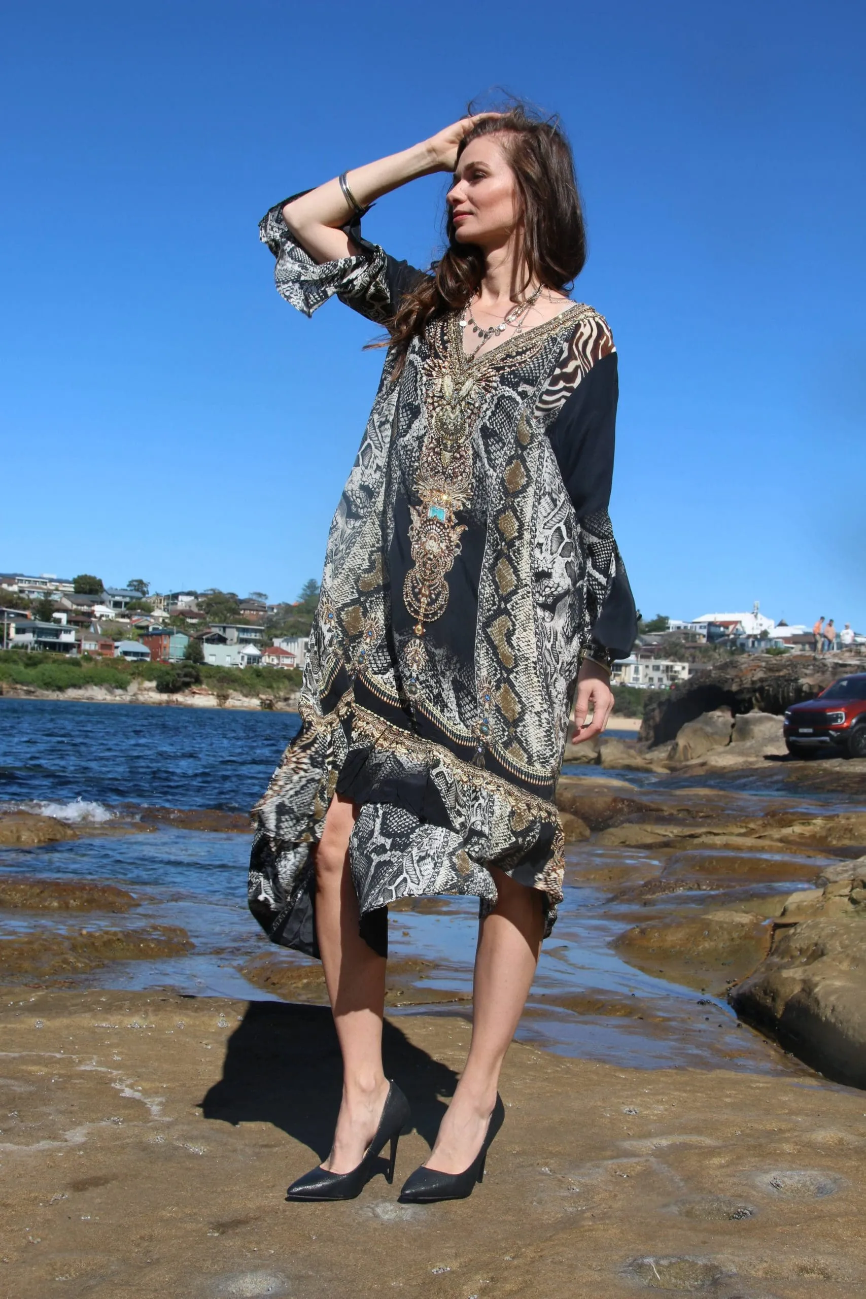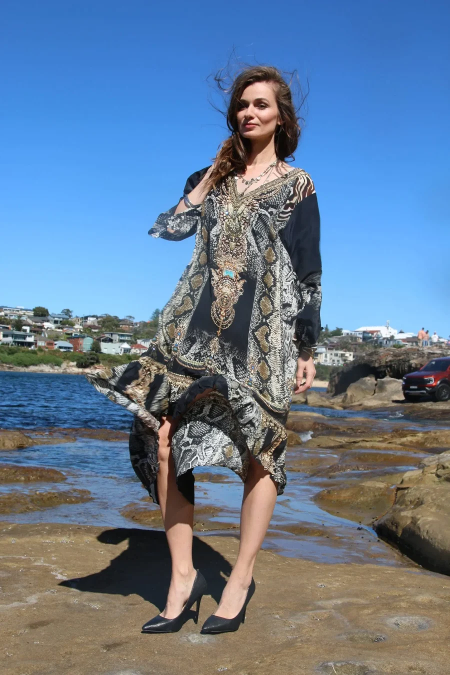 Style: Round Neck Long Kaftan Color: Red Fabric: Silk