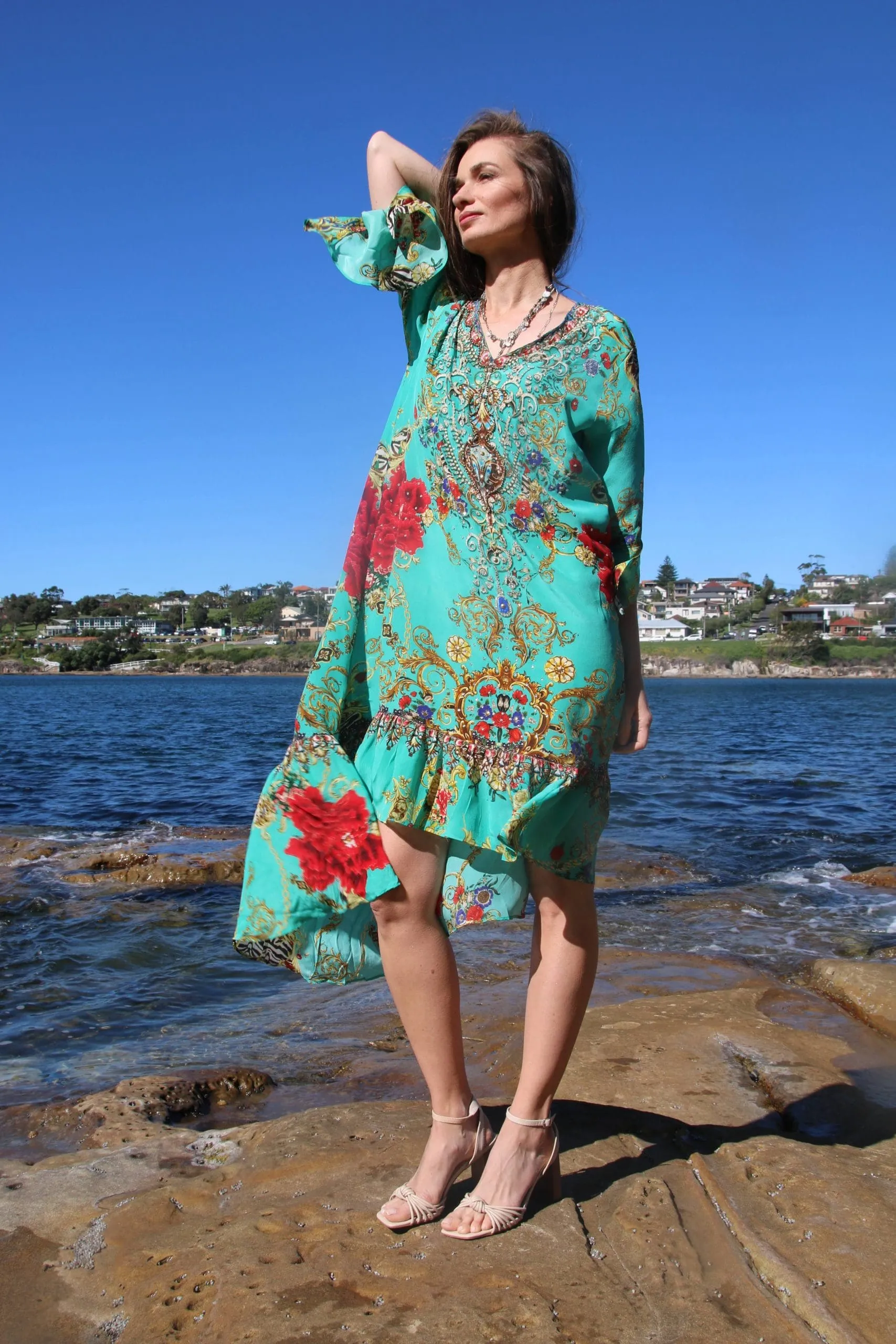 Style: Razor Dress Color: Aqua Fabric: Silk